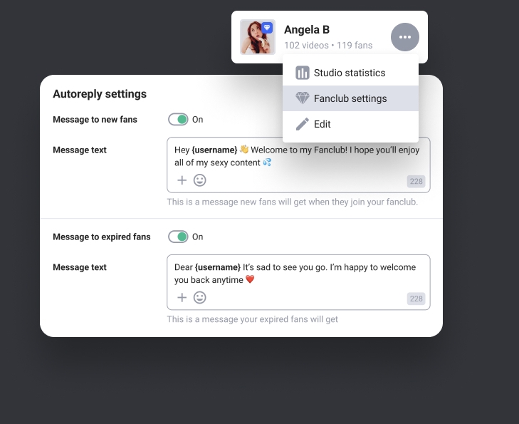 Greet new fans automatically once they subscribe to your FanClub. Compose an engaging message so they reply back to you in order to send private photos & videos. You can also set automated messages for fans who unsubscribed from you.